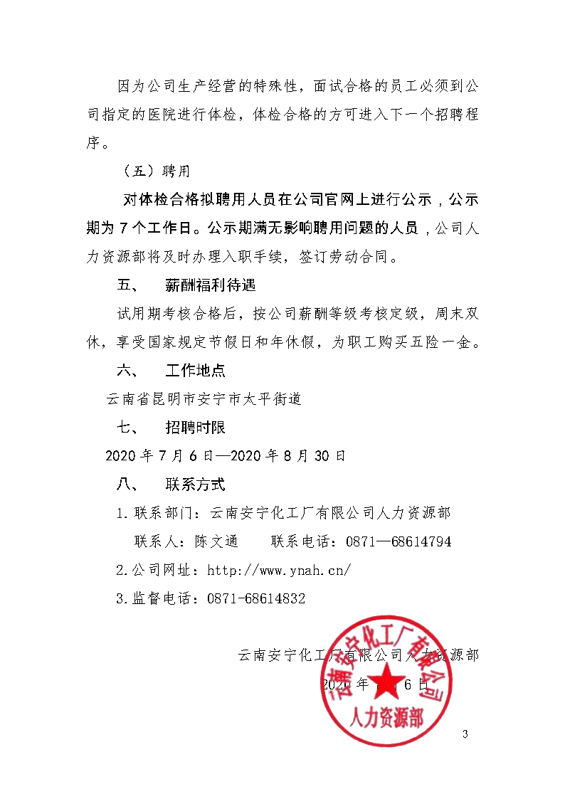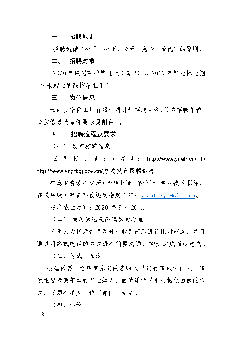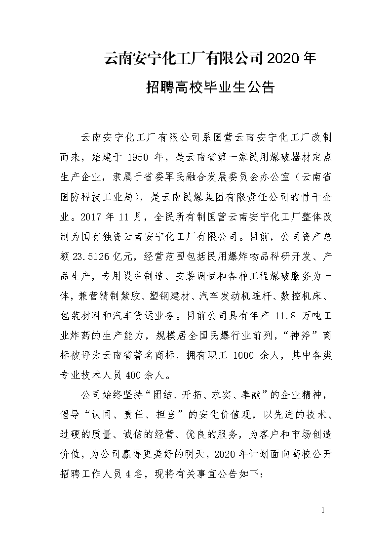 云南安寧化工廠有限公司2020年招聘高校畢業(yè)生公告