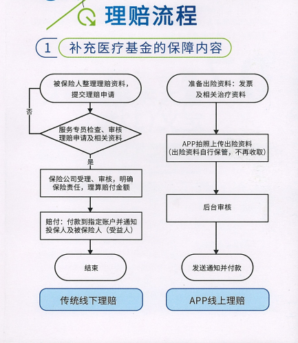 補充醫(yī)療保險的理賠方式主要分為“APP線上理賠”和“傳統(tǒng)線下理賠”,其相應的理賠流程如下: