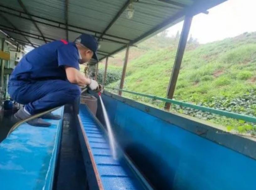 為保證設(shè)備正常運行,端午節(jié)期間,金沙人化工炸藥生產(chǎn)車間部分黨員、職工們主動放棄假期,利用停產(chǎn)時間,對生產(chǎn)區(qū)各類設(shè)備進行維護保養(yǎng)、藥卷冷卻鏈板及水池進行徹底清洗。盡管加班期間突遇雷雨天氣,每個人被房檐濺落的雨水打濕了衣服,但他們?nèi)匀缓翢o怨言,仔細清理,不折不扣地完成了清洗保養(yǎng)工作。