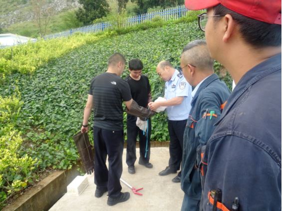 8月1日上午,公司安全質(zhì)量和技術(shù)設(shè)備部接到報(bào)告,生產(chǎn)車間機(jī)修組旁溝道內(nèi)發(fā)現(xiàn)一條蛇。安技部立即組織安全員趕赴現(xiàn)場(chǎng)拍照取證,經(jīng)查閱資料、圖片反復(fù)比對(duì),該條蛇疑似國(guó)家級(jí)保護(hù)動(dòng)物烙鐵頭蛇,該蛇具有毒性。為保護(hù)動(dòng)物不被傷害和職工不被動(dòng)物傷害,安全員用籃子將其控制后,立即向個(gè)舊市森林公安報(bào)警,森林公安到達(dá)現(xiàn)場(chǎng),在檢查防護(hù)裝備妥當(dāng)后,用蛇鉗將蛇順利裝進(jìn)捕蛇袋,并按照相關(guān)規(guī)定對(duì)其進(jìn)行保護(hù)和安置。
