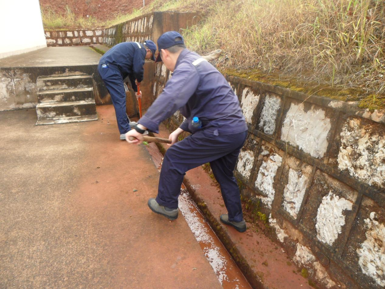 因近期連續(xù)降雨,導(dǎo)致庫房排水溝內(nèi)堵塞,存在較大安全隱患。玉溪分公司黨總支立即成立汛期隱患治理黨員突擊隊,前往總庫區(qū)開展清除排水溝道雜草、淤泥,以及庫區(qū)圍墻巡邏便道周邊雜草活動。