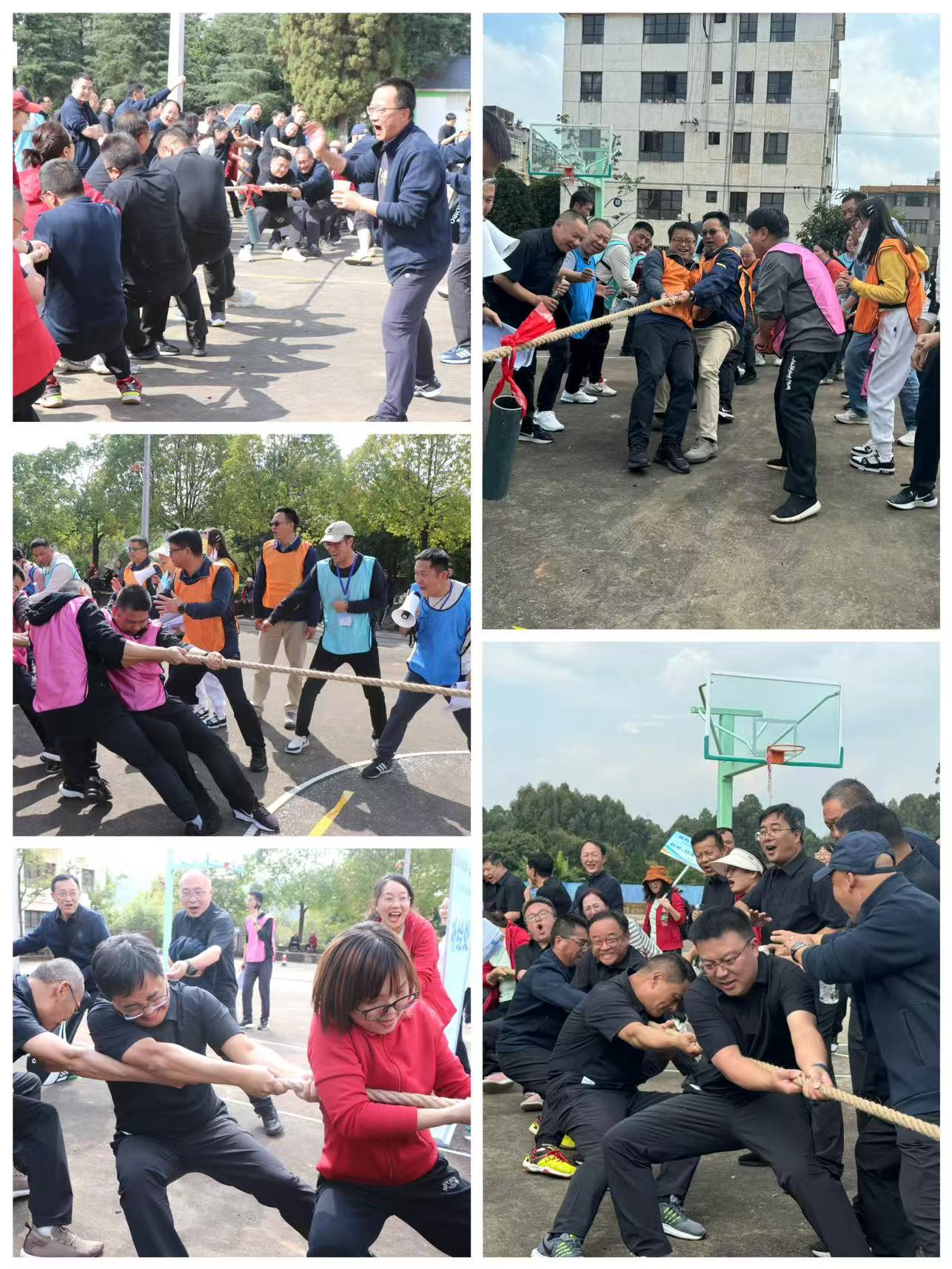 拔河比賽現(xiàn)場(chǎng),參賽隊(duì)員們緊握繩索、腳蹬地面,在啦啦隊(duì)的加油聲中凝聚起磅礴力量,每一次繩索的牽動(dòng)都牽動(dòng)著全場(chǎng)目光,輸贏間的握手致意更顯 “友誼第一、比賽第二” 的體育精神。