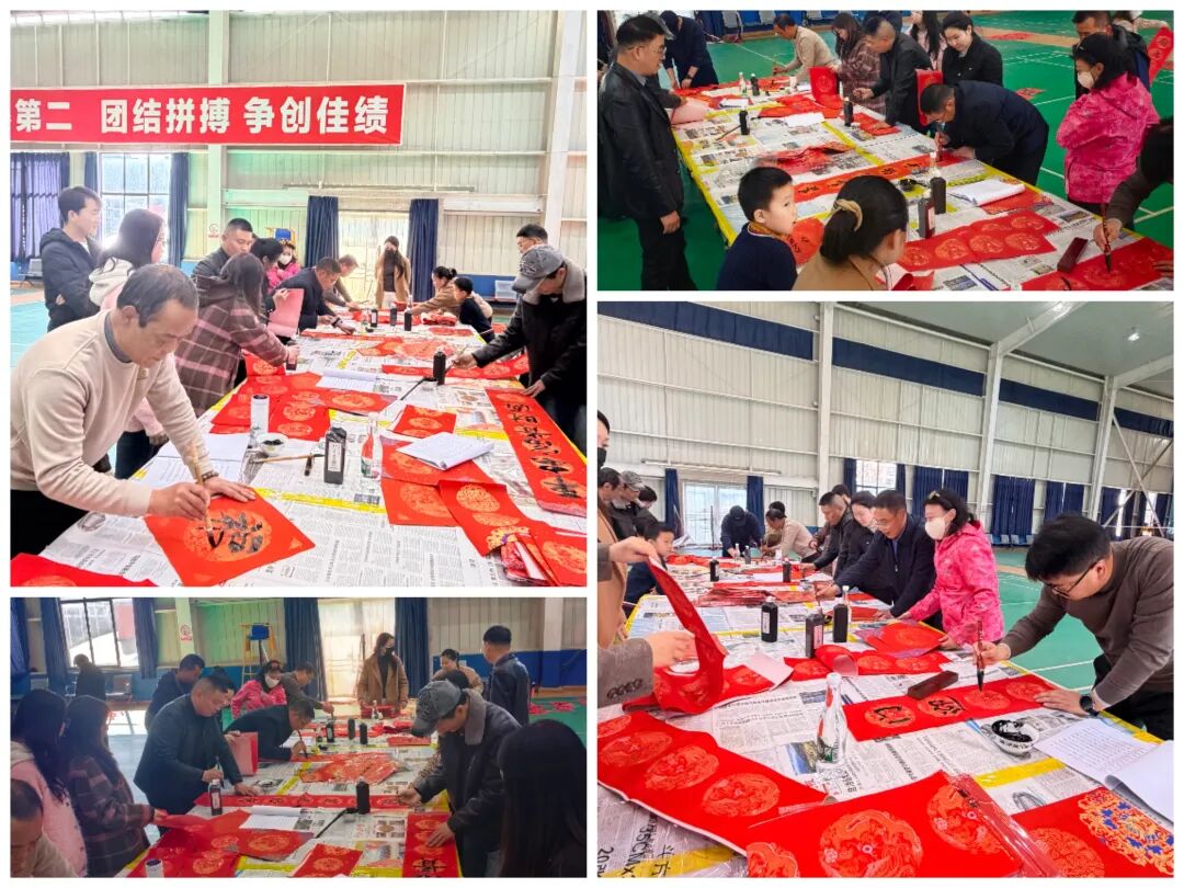 活動特別邀請了五位公司內(nèi)部書法愛好者現(xiàn)場揮毫獻藝,為職工送上專屬新春祝福。創(chuàng)作現(xiàn)場,各書法愛好者凝神聚力、筆走龍蛇,墨汁浸潤紙張,氣韻流轉(zhuǎn)其間。一個個飽滿遒勁的“?!弊周S然紙上,熠熠生輝,承載著歲歲安康的美好期許;一副副寓意吉祥、對仗工整的春聯(lián)墨韻悠長,或寄托對新歲順?biāo)斓钠谂?,或飽含對企業(yè)發(fā)展的祝福,或彰顯職工奮進的初心。
